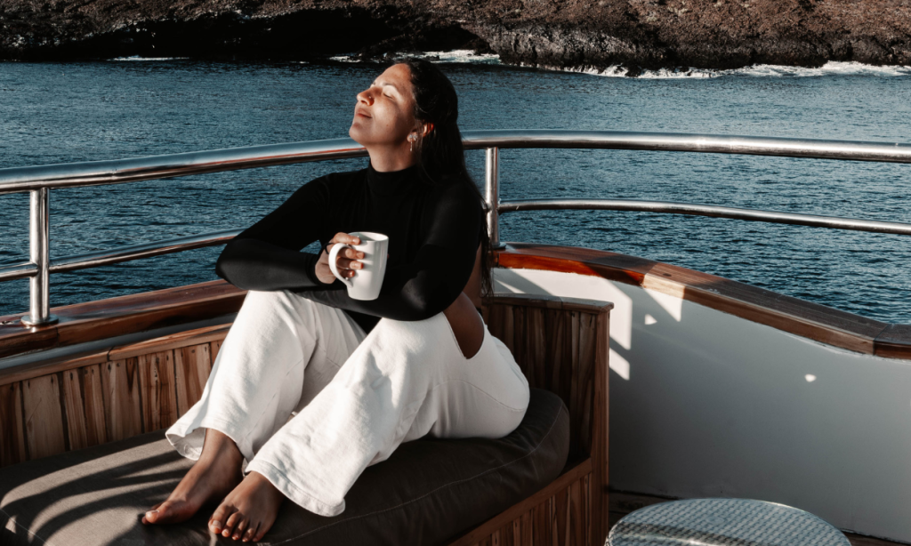 Beyond the deck, our onboard wellness spaces are designed for deep restoration. Your yoga retreat package starts at $2500 and includes: