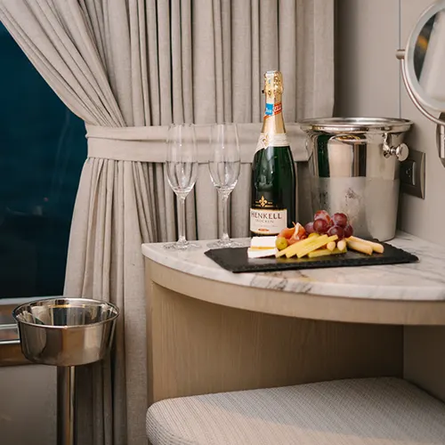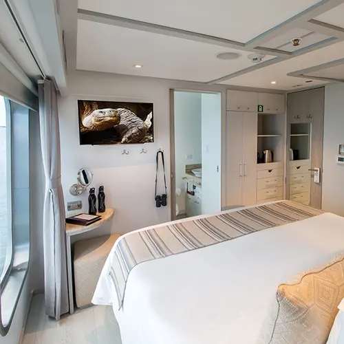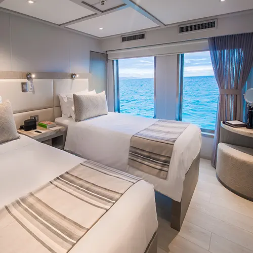 Experience exceptional comfort and elegance in our designer staterooms aboard our luxury expedition cruises. Large windows offer expansive, unobstructed ocean views, setting the stage for an unforgettable journey. But that’s just the beginning. Each cabin boasts premium amenities, ensuring you feel right at home and enjoy a peaceful night’s rest amidst the wonders of the sea.